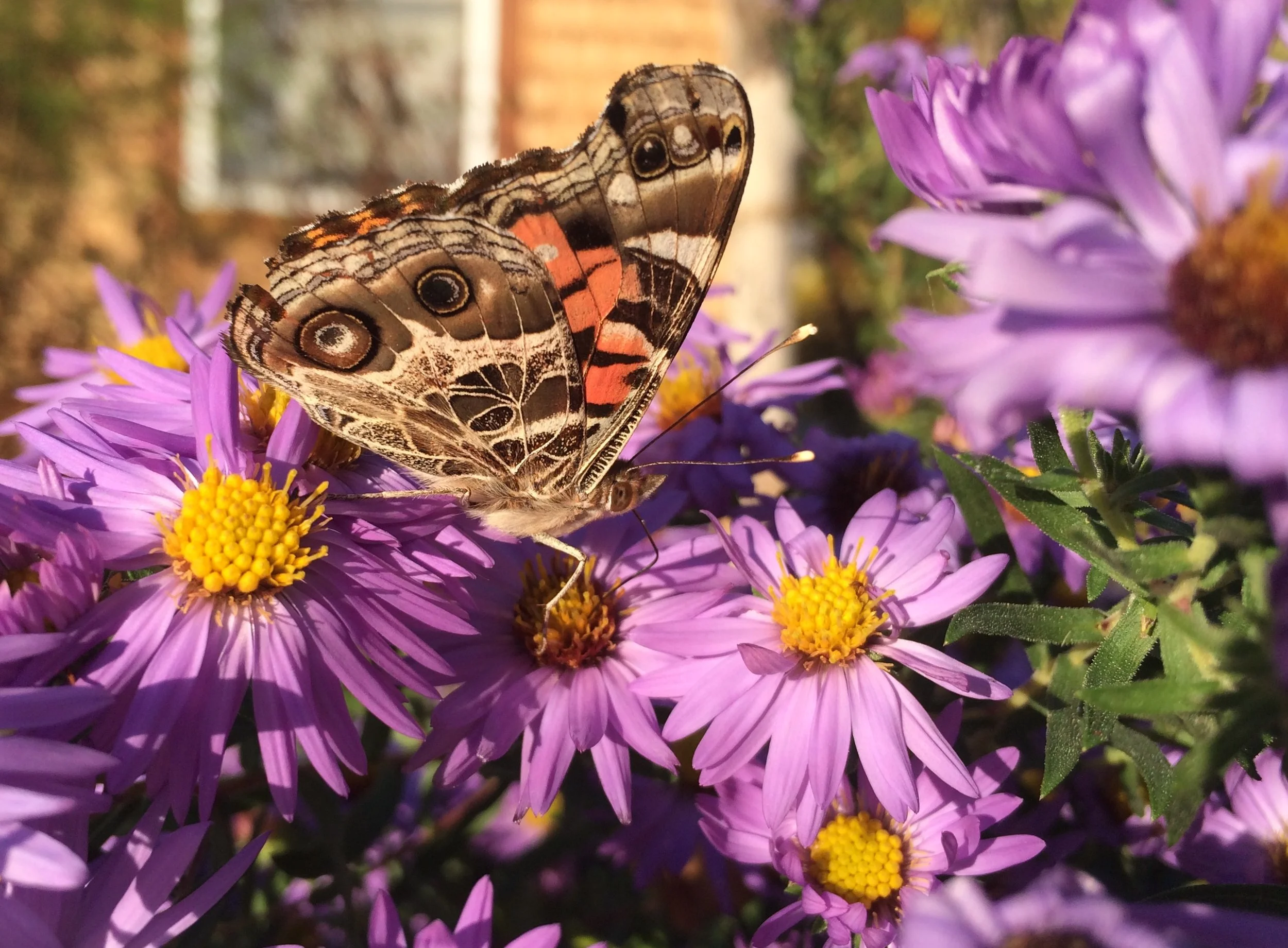 A Painted Lady Butterfly sipping from Aster oblongifolius (Aromatic Aster)